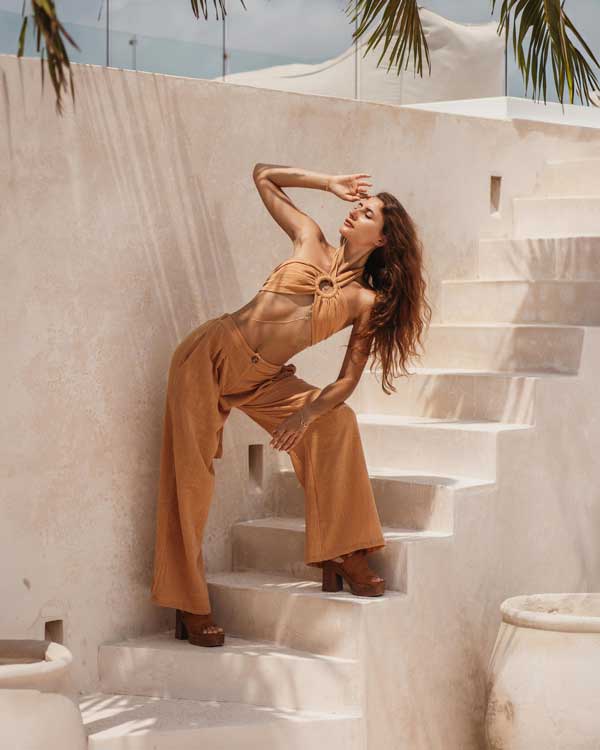 La Blusa Pasión es una prenda que combina estilo y comodidad, perfecta para las mujeres que buscan un look fresco y elegante. Hecha a mano con tela de algodón natural, esta blusa tiene un escote halter, se ata en el cuello, con anillo central, que aporta un toque de sofisticación y modernidad.