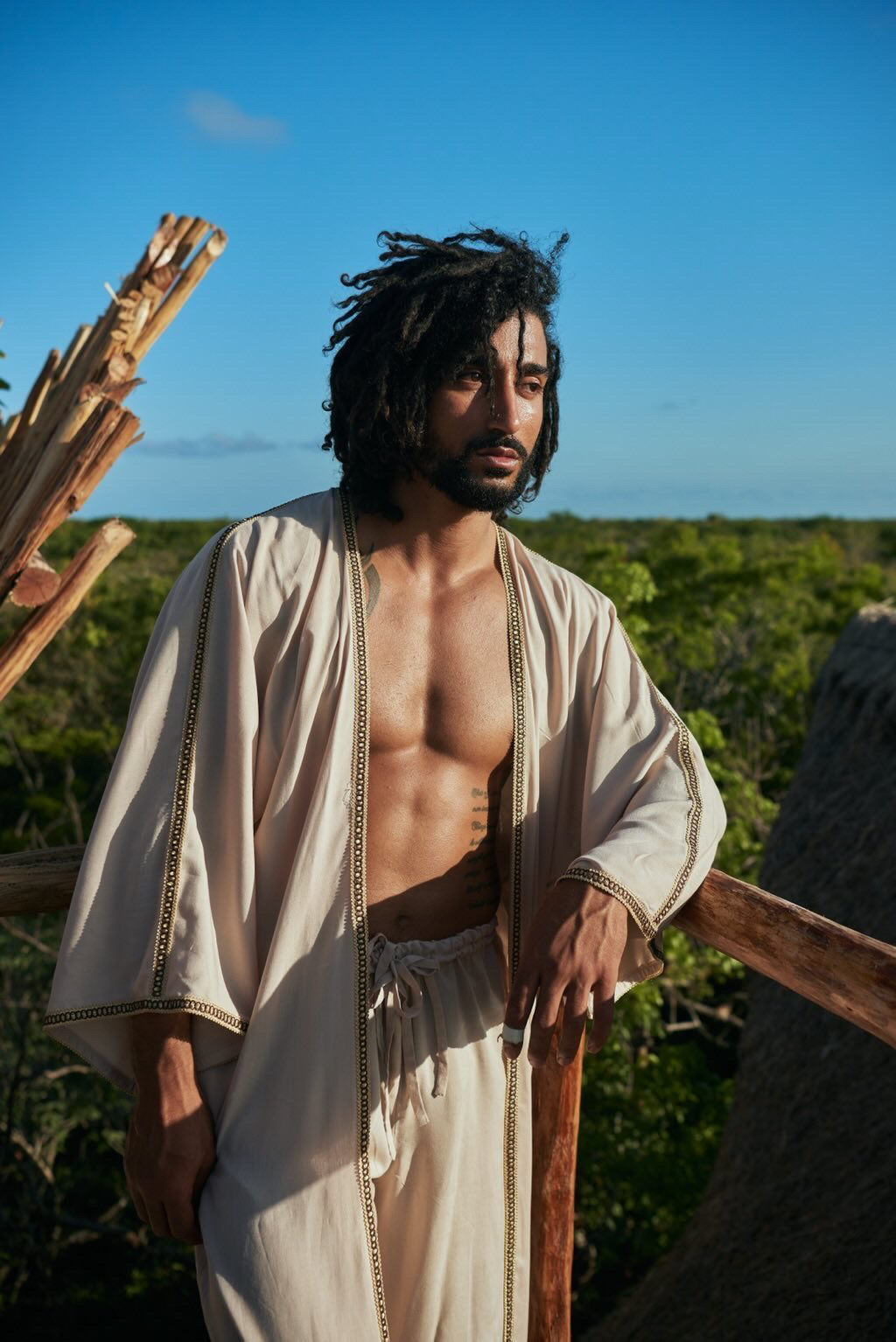 La Túnica Fortuna es una prenda sin género que combina elegancia y comodidad, perfecta para cualquier persona que desee un look sofisticado y relajado.