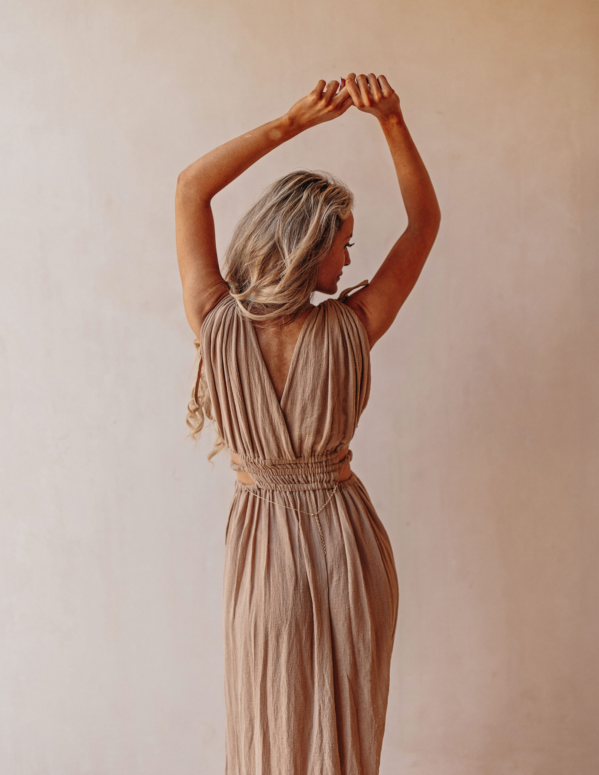 El Vestido Libertad es un diseño que captura la esencia de la libertad. Este vestido, hecho con telas de fibra natural de algodón, tiene unas aberturas laterales en la cintura, creando un diseño moderno y fresco.